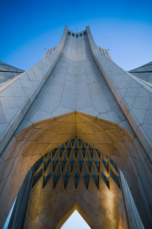 TEHRAN, IRAN - OCTOBER 24, 2017: Azadi Tower also called The Gates to Tehran is a monumental structure made in persian style covered with white marble, on October 24 in Tehran.
