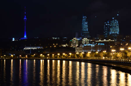 View of the National Seaside Park in Baku city, Azerbaijan, Baku Bay