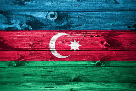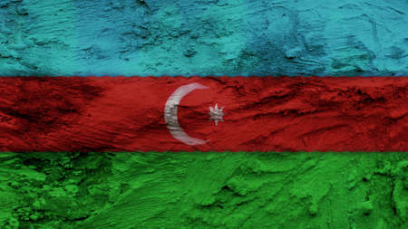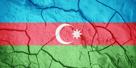 Flag of Azerbaijan. Azerbaijani symbol. Flag on the background of dry cracked earth. Azerbaijan flag with drought concept