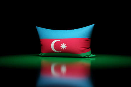 3d illustration of rectangular pillow depicting the national flag of Azerbaijan under red light on black isolated background