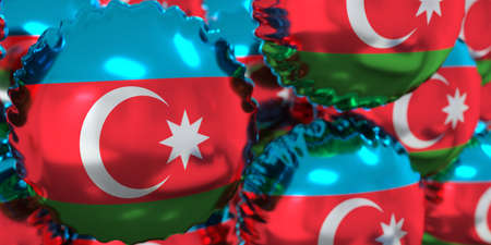 Foil balloons with national flag of Azerbaijan. Holiday conceptual 3D rendering