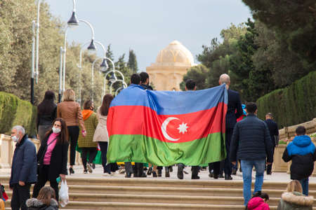 Karabakh Victory Day in Azerbaijan. People with Azerbaijan and Turkish flags. Baku - Azerbaijan: 10 November 2020.