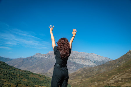 Picturesque mountain landscape with blue sky in Kabardino-Balkaria, Russia