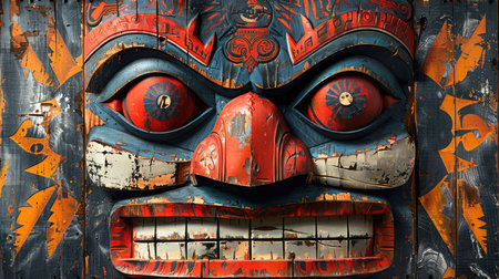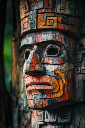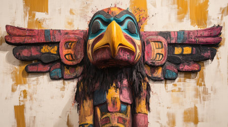 Ancient Native American Totem Pole Close Up with Intricate Carvings and Vivid Colors in Historical Cultural Artifact AI Generative