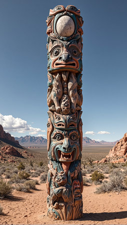 AI Generated. Totems play a crucial role in storytelling and cultural preservation as they symbolize rich history and wisdom of Indigenous cultures through their carved figures