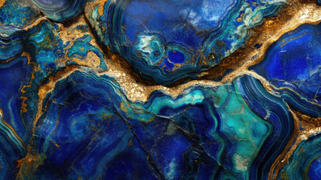 Sapphire blue marble stone with gold vein. Vivid graphite texture geode wallpaper background.