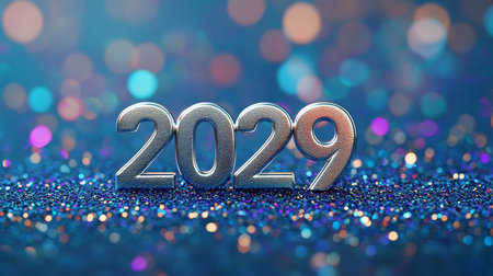 2029 Silver Numerals Shine on Blue Glitter, Happy New Year Background, Festive Celebration Concept