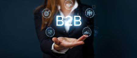 Business person navigates B2B landscape, harness technology to enhance business-to-business connections. Discover reshapes B2B interaction, driving innovation in business-to-businesses strategy. UUID