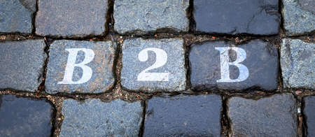 B2B is written on a wet stone gray wall in big letters. Background image.