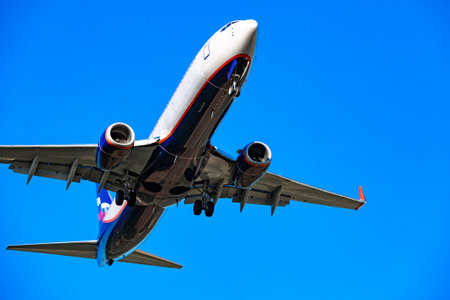 November 23, 2018, Moscow, Russia Passenger plane comes in for landing at Sheremetyevo airport.