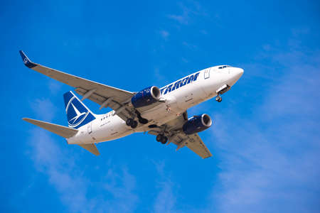 BARCELONA, SPAIN - AUGUST 20, 2016: Tarom arrives at the airport on schedule. Copy space for text