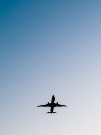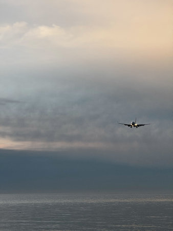 Airplane Landing Frontal View Evening Sky Travel Concept United States