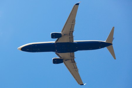 Boeing 737 from the Bottom with blu Sky as Background
