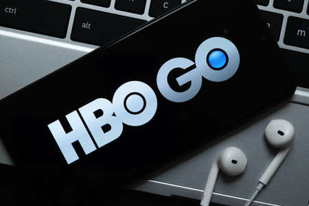 Krakow, Poland - October 07, 2020: HBO GO application sign on the smartphone screen. HBO GO is a famous provider of Internet streaming service for watching video