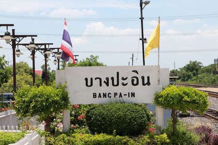 The train station sign of Bang pa in station at Ayuthaya in Thailand.