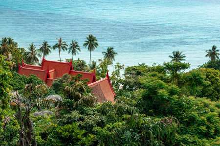 Aerial shot of Thai public temple in Mae Fah Luang University