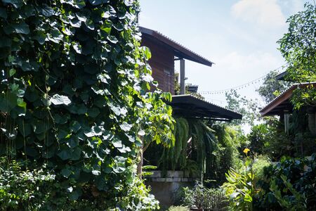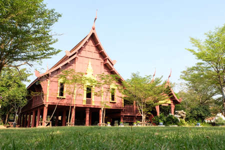 traditional Thai wooden sculpture home. vintage house in Thailand