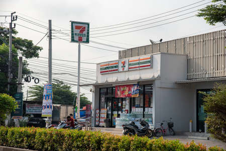7-Eleven store sign high banner 7-11 Bangkok, Thailand logo 7 eleven items and thousands of branches in countries that mok 7 Thailand March 19, 2021
