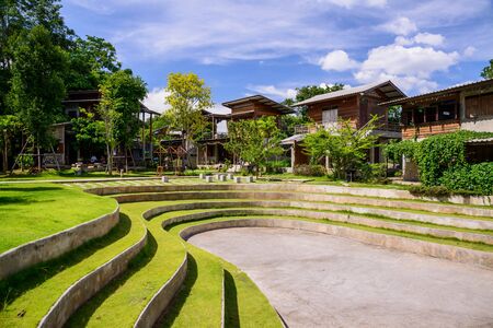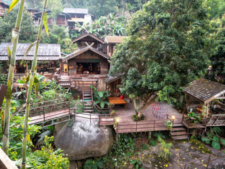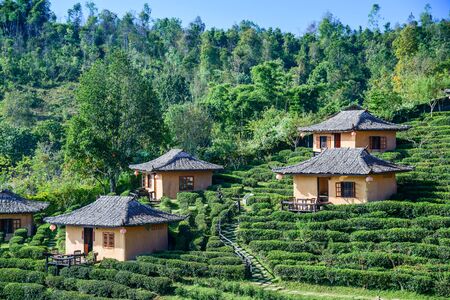 Lodging houses on hill slope in tea plantation at Ban Rak Thai , Mae Hong Son , Thailand.