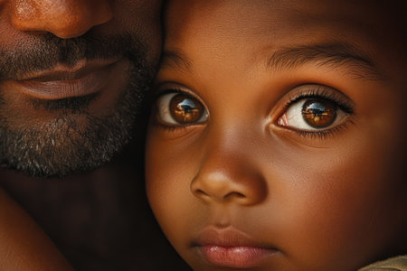 Close up shot of african father and daughter outside