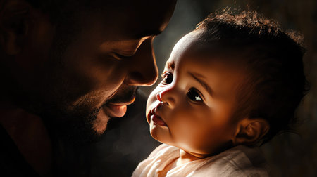 African American parent cradling their newborn baby. Unwavering parental affection, celebration of Father's Day.