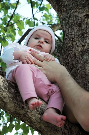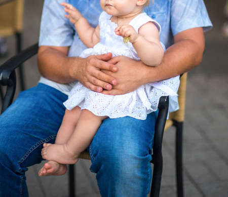 daughter of the garden in her father's arms. concept of happy paternity. Fathers and Sons. summer
