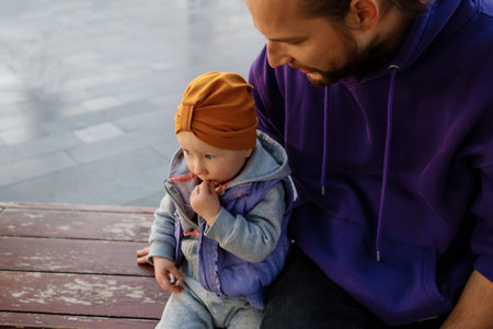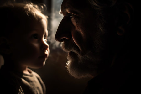 A heartwarming image captures the tender bond between a loving father and his baby son Bathed in soft, natural light, the scene evokes pure joy, unconditional love, and cherished moments The close-up shot highlights the father's protective instincts and the sweet smiles shared between father and child, creating a timeless AI Generative