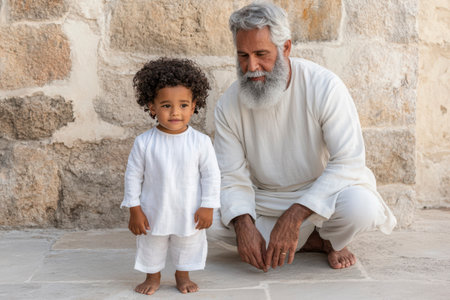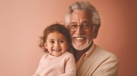 Happy grandfather holding his indian grandchild in a park. The scene captures a tender moment of love, joy, and togetherness.