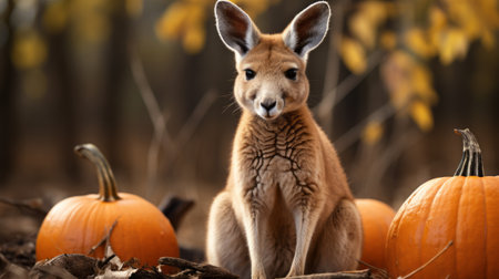 A juvenile marsupial lounges amidst golden leaves and dappled sunlight, embodying serenity in a vibrant autumn woodland scene.
