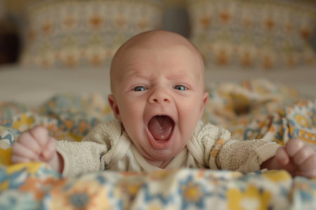 An emotional image of a baby crying intensely, eyes shut tight, conveying discomfort, vulnerability, and raw emotion.