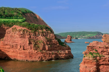 red sandstones of the Ladram bay on the English Channel coast