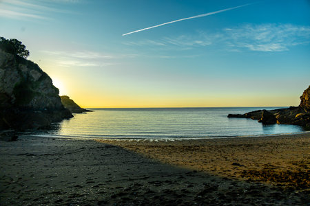 Tranquil sunrise by the sea in south coast of Ireland, Dunmore East, County Waterford.