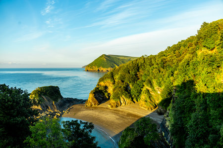 View from the South West Coastpath of the North Devon coastline at Woody Bay