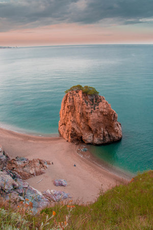 A vertical shot of a big rock by the ocean captured in Begur, Spain