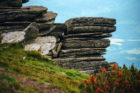 Rocks in carpathian mountains, wild nature.