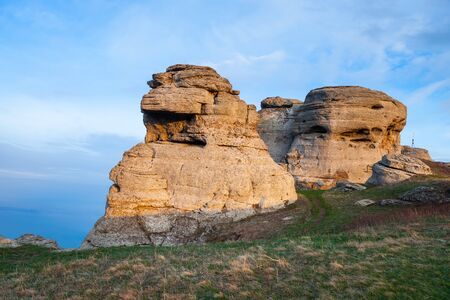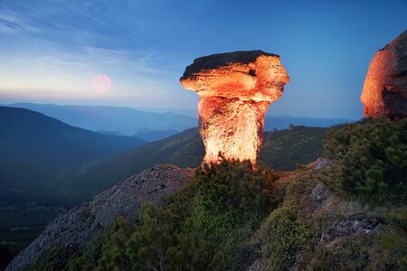 Sunset light in the Demerdzhi mountain range in the Valley of ghosts. Crimea