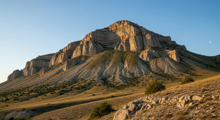 Majestic mountain landscape at sunset with clear sky and rugged terrain