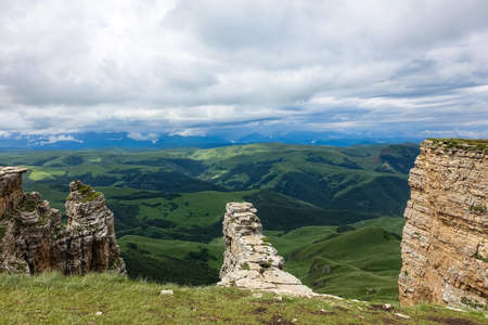 Panoramic view of the Bermamyt Plateau in the Karachay-Cherkessia Republic, Russia