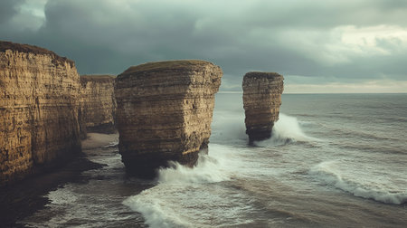 The Three Sisters cliffs in Etretat, Normandy, France.
