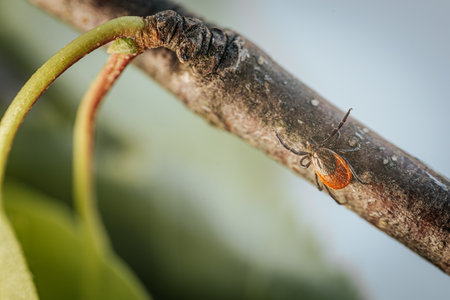 Close-Up of a Tick on a Twig in a Natural Setting, Wildlife Detail