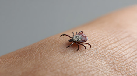 Tick is crawling on human skin, representing the potential threat of lyme disease and other tick borne illnesses, highlighting the importance of tick checks and prevention measures