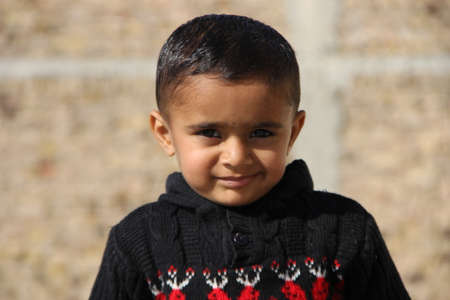 portrait of a kid in Pakistan, kid wears a black hoodie in the winter season