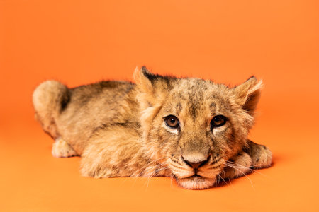 cute lion cub lying orange