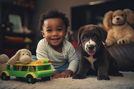 A cheerful baby with bright eyes lies beside a cute bunny in a cozy, woven setting. The soft light enhances their playful expressions, creating a heartwarming moment of connection and joy.