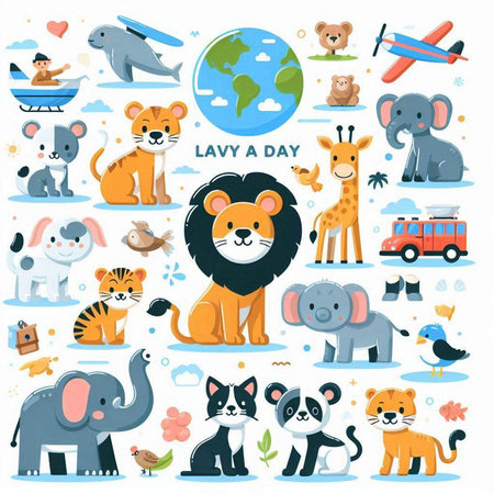 A vibrant collage displays various animal species, including a lion family, a polar bear, a frog, an eagle, a shark, a red panda, monkeys and other animals. The diverse collection showcases creatures in their natural environments, from underwater scenes to mountainous landscapes. Suitable for educational or illustrative purposes.