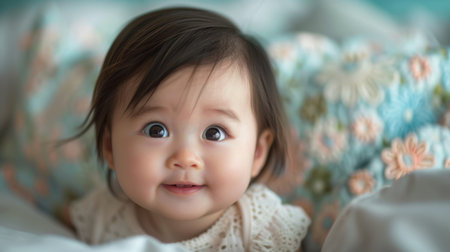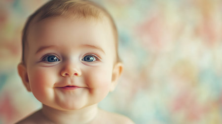 Adorable baby portrait with bright eyes and a genuine smile, capturing pure joy and innocence.