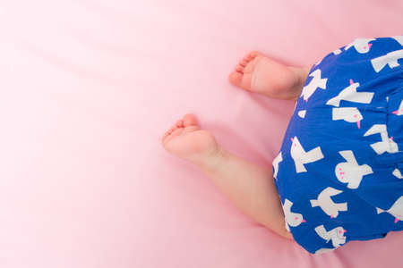 Beautiful closeup adorable baby legs on pink background