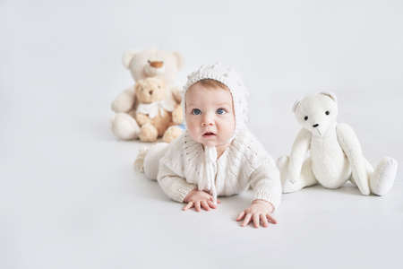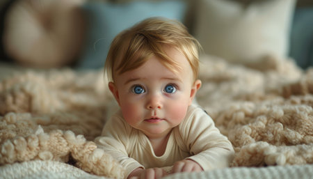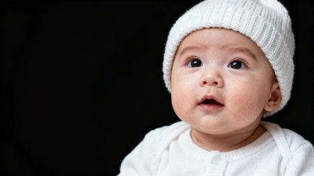 Inquisitive Baby with Bright Eyes and Charming Smile Captured in Studio on Plain Background
