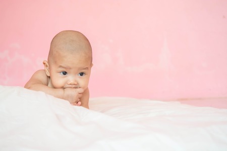 Asian baby boy lying on bed