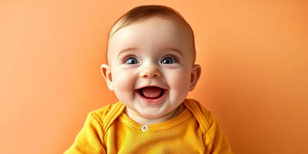 Adorable baby face beaming with joy and a charming smile, capturing pure innocence and happiness.